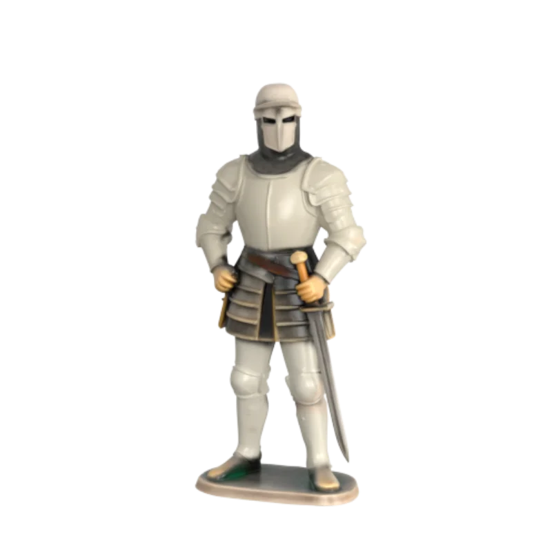 Brugerdefineret Engros Sølv Ridderrustning af Harpiksfigur OEM Middelalder Sværdkæmper Statue