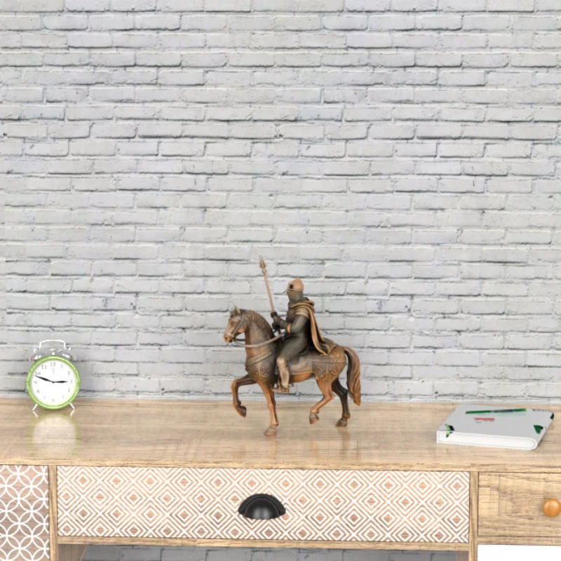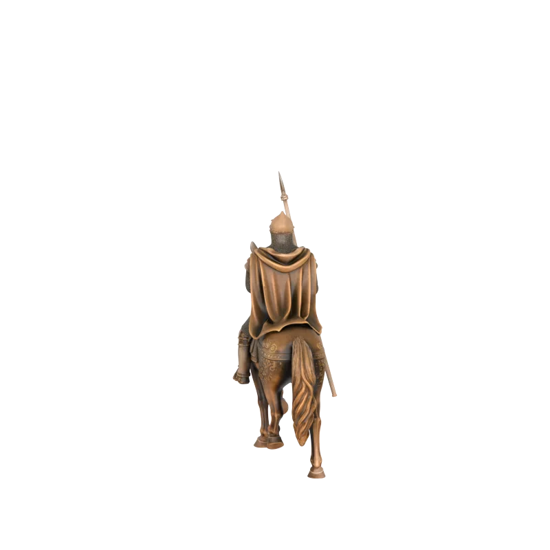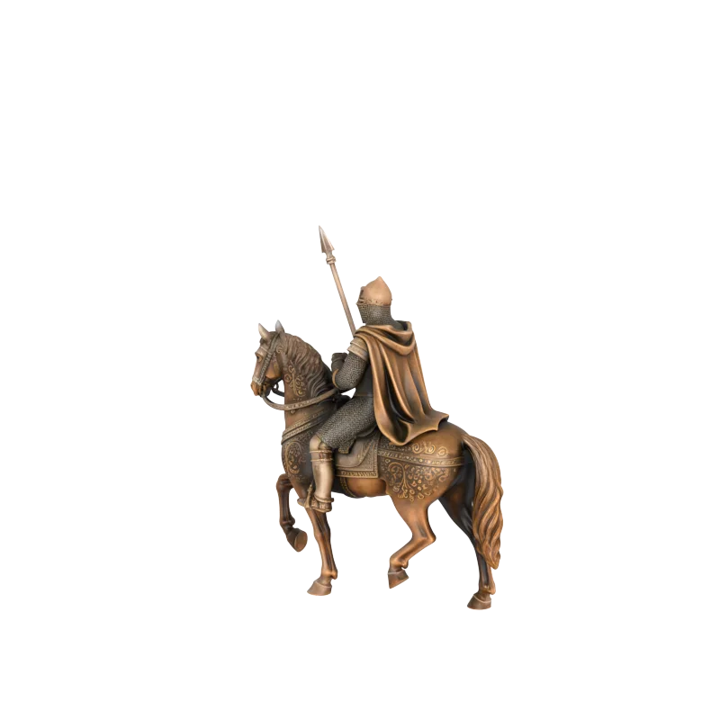 Figura de resina de caballero medieval sobre caballo con lanza | Escultura de guerrero en bronce para decoración del hogar
