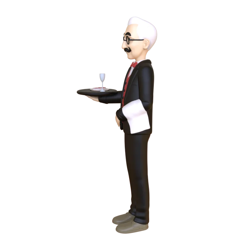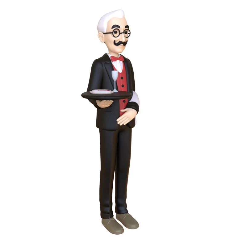 Custom Elderly Resin Waiter Statue Life-Size Waiter Figurine Serving Butler for Restaurant and Decorative Home Display