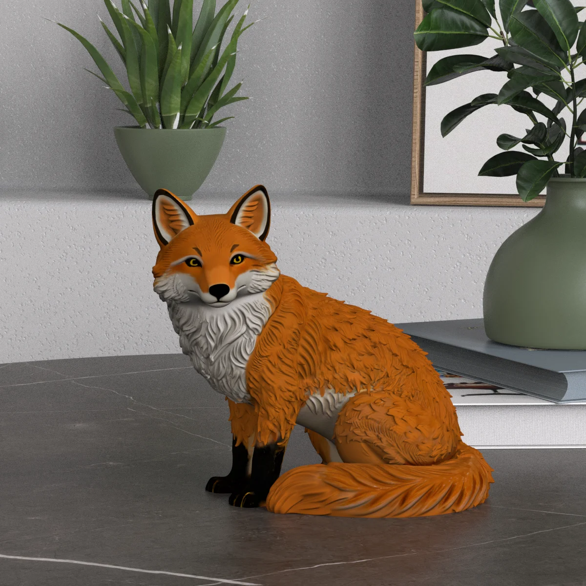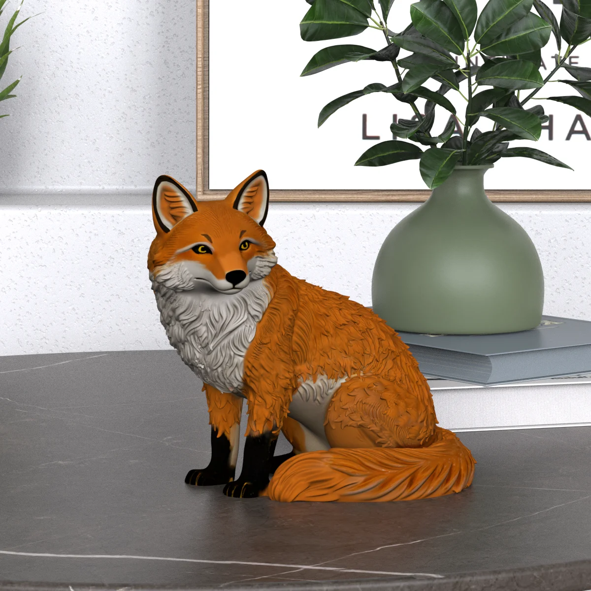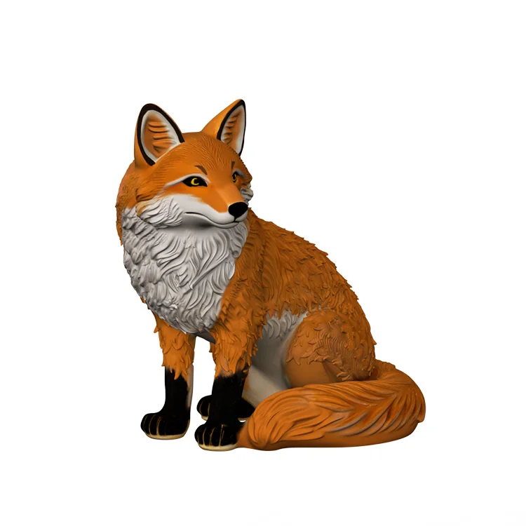 OEM-изделие: статуэтка лисы в сидячем положении с глянцевым покрытием из смолы, оптовая продажа, настраиваемое премиальное животное-фигурка, художественное изделие для персонализированного интерьера
