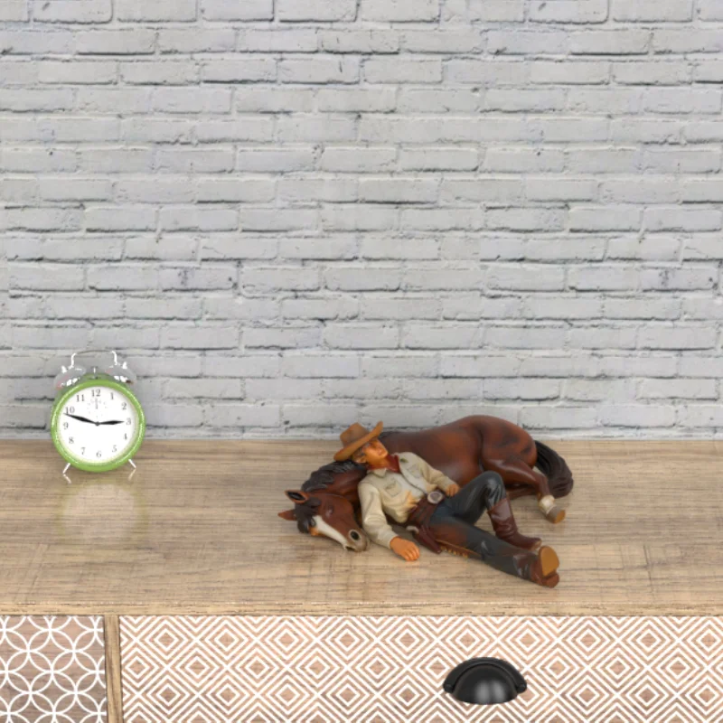 Velesprodaja prilagođene smole figure kauboya koji odmara sa konjem, OEM kineske rukotvorine