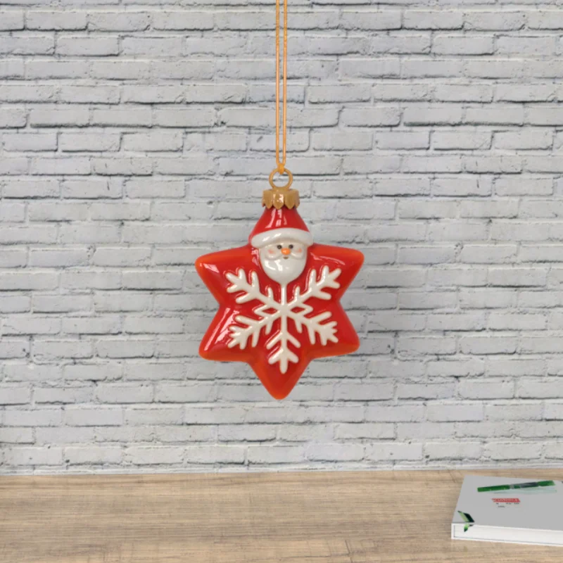 Pasadyang Ceramic na Santa Star na Palamuti sa Pasko, De-kahoy na Dekorasyon para sa Tahanan tuwing Pasko
